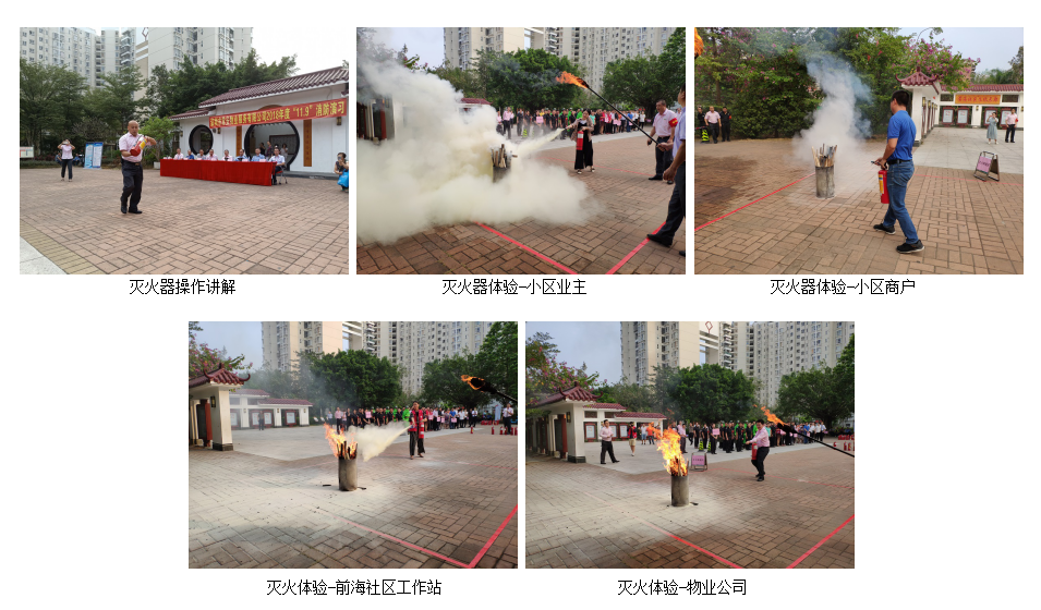 在確認(rèn)現(xiàn)場火情得到控制的情況下,現(xiàn)場指揮組織各應(yīng)急小組到前海花園三期廣場集合,前海花園物業(yè)服務(wù)中心秩序維護(hù)隊長為現(xiàn)場所有人員詳細(xì)講解了ABC干粉滅火器的使用方法,隨后組織了約10%的參與演習(xí)人員開啟滅火器操作體驗。
