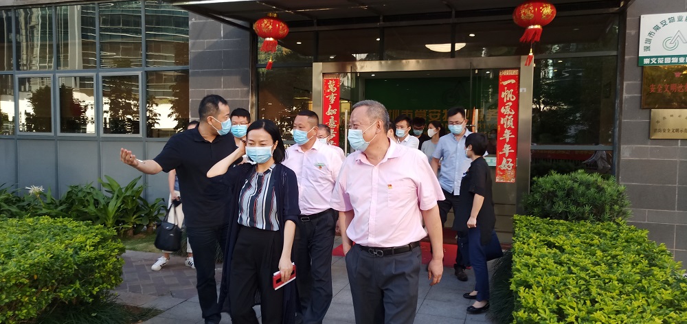 2020年6月4日下午,深圳市住房和建設局物業管理分管領導朱文芳副巡視員率物業監管處張雁處長、仇晨卉副處長、瞿能友副處長、市建設科技促進中心唐振忠副主任等一行16人到崇文花園專題調研檢查綠色物業管理和安全生產工作,深圳市常安物業服務有限公司張武董事長、黃國義副總經理、孔凡泉總經理助理兼崇文花園分公司經理等陪同此次調研活動。