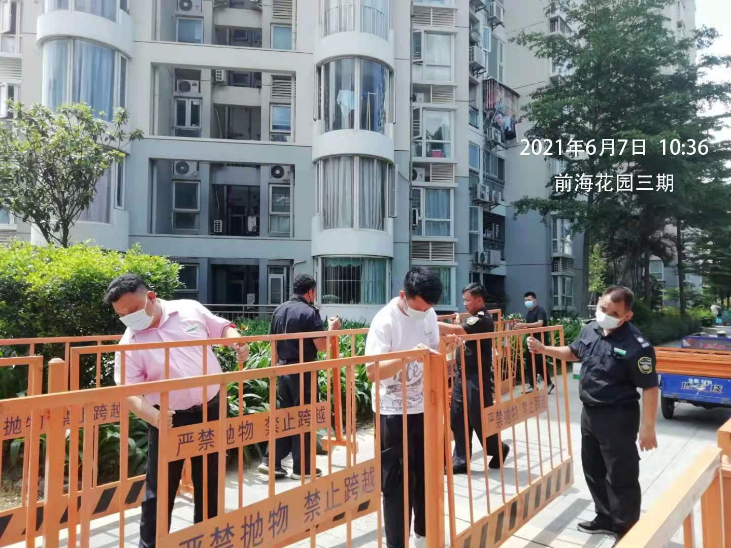 一、緊急協調,布置圍擋。我司前?;▓@、崇文花園、百旺信高科技工業園、荔苑小區等多個服務中心接獲社區工作站通知的第一時間,各項目主任首當其沖、返回崗位,配合區防疫部門在小區/園區建立圍擋并開展新冠核酸檢測工作,并組織協調休假人員加入應急布置工作之中。